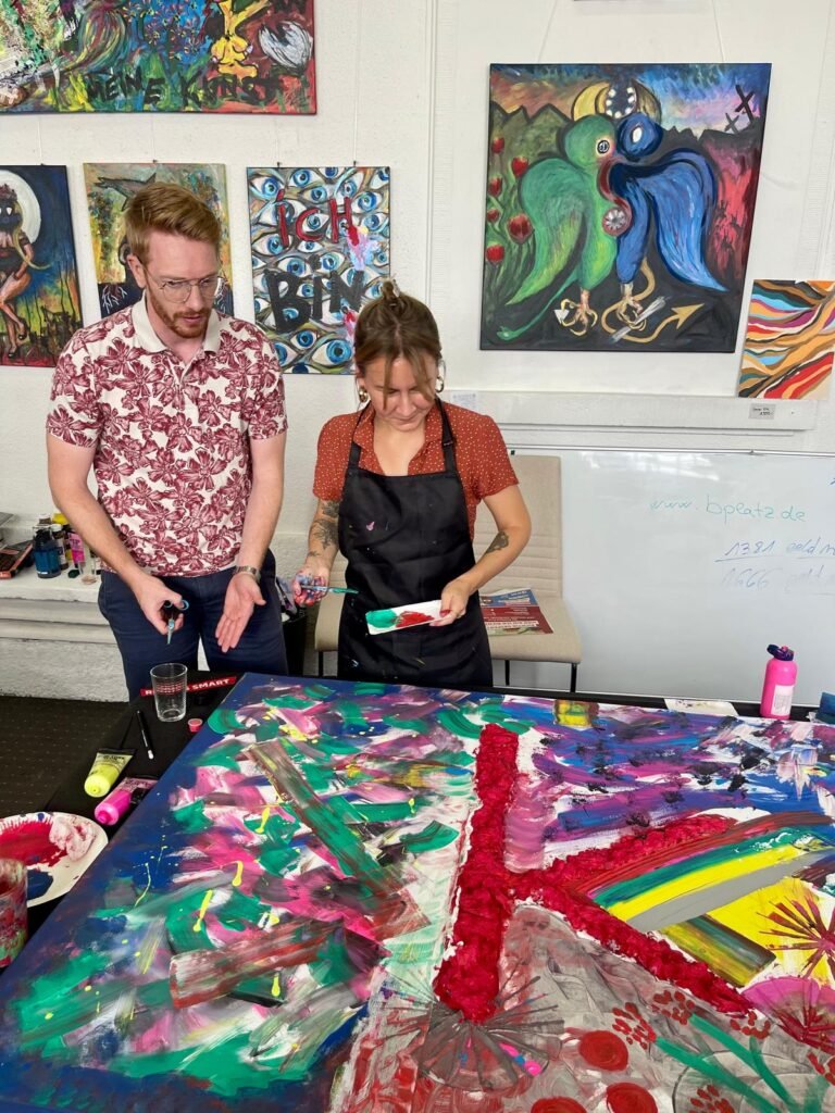 In einer modernen, künstlerischen Umgebung entsteht Raum für neue Impulse, echte Begegnung und authentische Kommunikation. Statt digitaler Meetings steht hier das gemeinsame Erleben im Vordergrund: Farben, Bewegung, Kreativität – und ein Team, das gemeinsam etwas Sichtbares erschafft.